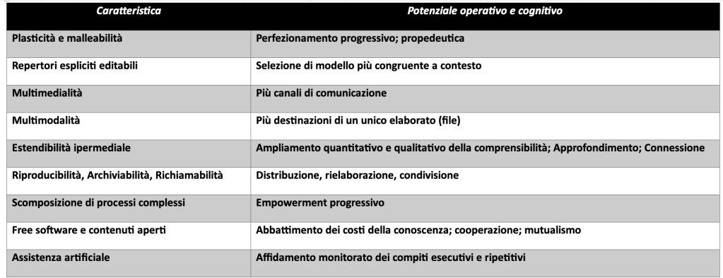 - la plasticità e la malleabilità dei dati e delle informazioni su base digitale permettono (ovviamente nel rispetto del diritto d’autore) di manipolarli con semplicità ed efficacia; in particolare, sottolineiamo la possibilità di procedere per perfezionamenti successivi e successivamente a eventuali riadattamenti;